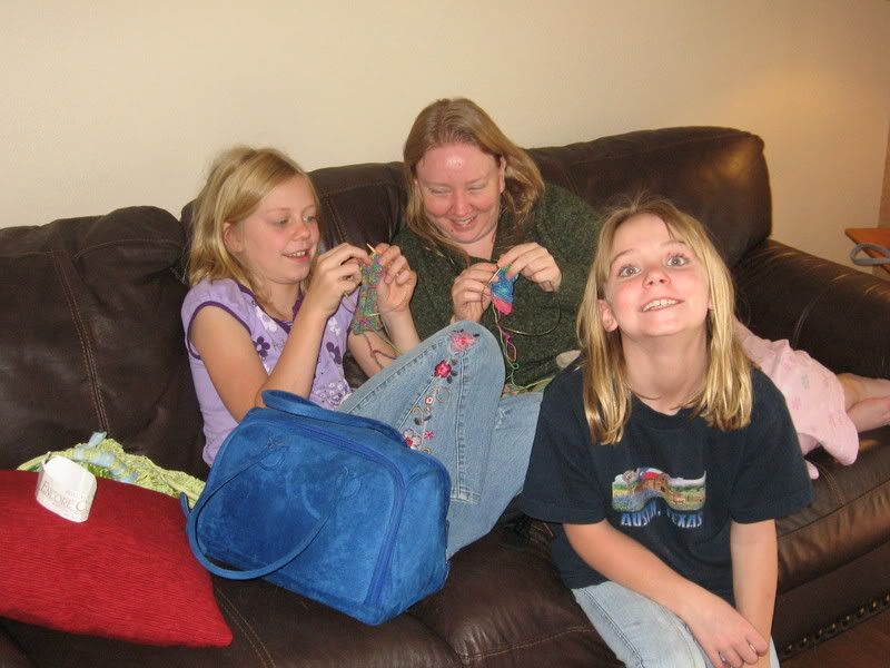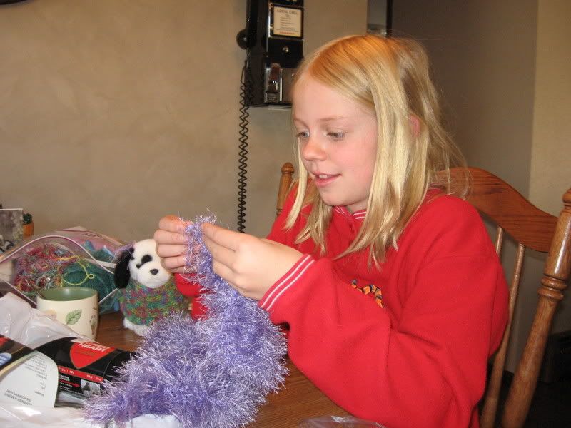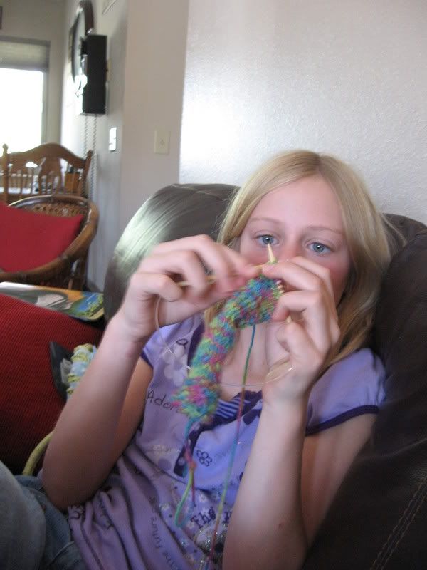 A couple of weeks ago, I had the honor of teaching 10-year-old Hannah to knit. She's the middle daughter of my friends Lori and Alan, and about a month ago, she asked if she could learn and if I would teach her. Hannah is one of the brightest girls I've met in years; I had no doubt that she could pick up knitting quickly. I just hoped it would hold her attention.