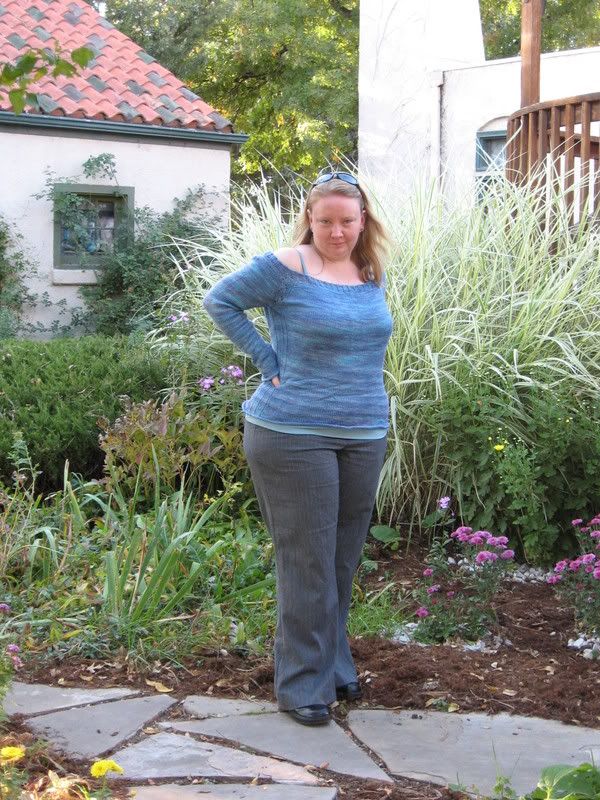 One of my newest original creations. The pattern is based loosely on numbers provided for raglan sweaters in Ann Budd's book The Knitter's Handy Book of Sweater Patterns. Additional details include false cables in place of the traditional raglan shaping at the shoulders and flare shaping at the waist and wrists.