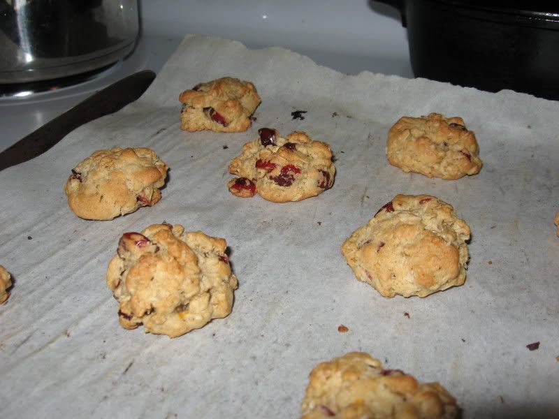 I really wanted to make something new for the holidays. But Christmas is full of tradition. So I compromised. I used my Grandma Stegmann's Oatmeal Cookie recipe. But instead of raisins, I used dried cranberries and orange zest.
